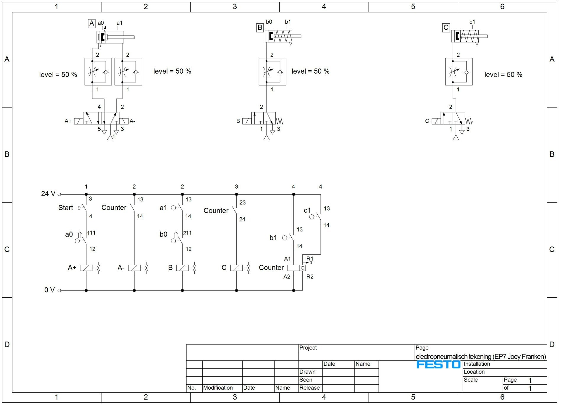 De foto's wat u ziet boven deze tekst is opdracht EP7 het pneumatisch schema en Electro pneumatisch, onderaan het document ziet u een verslag staan waarbij er meer informatie staat over opdracht EP7, de opdrachten wat we moesten maken en ook de foto's wat u hier boven ziet.
