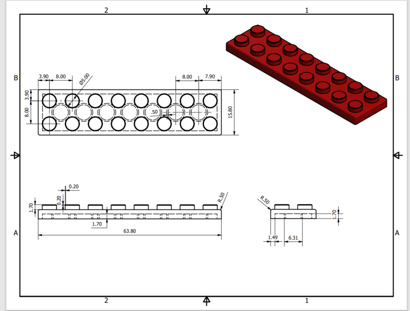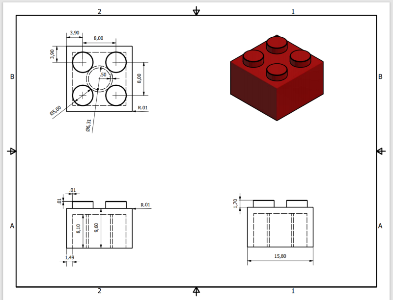 De rechter afbeelding is de werktekening van het 2x4 blokje
