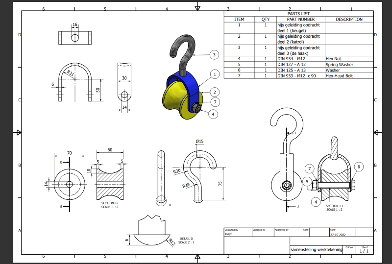 De rechter afbeelding is de werktekening de samenstelling van deze opdracht en de andere onderdelen.